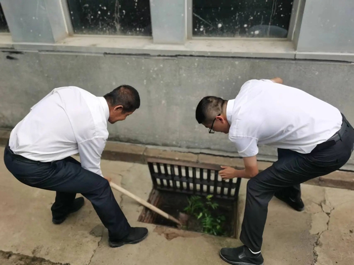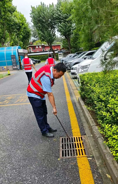 在接到暴雨紅色預警后,各事業部迅速行動,對樓宇屋面、排水管道、下水井等進行細致檢查,及時清理雜物,同時各事業部迅速將防汛物資補充到可能發生汛情的低洼位置,以便出現險情第一時間救援。
