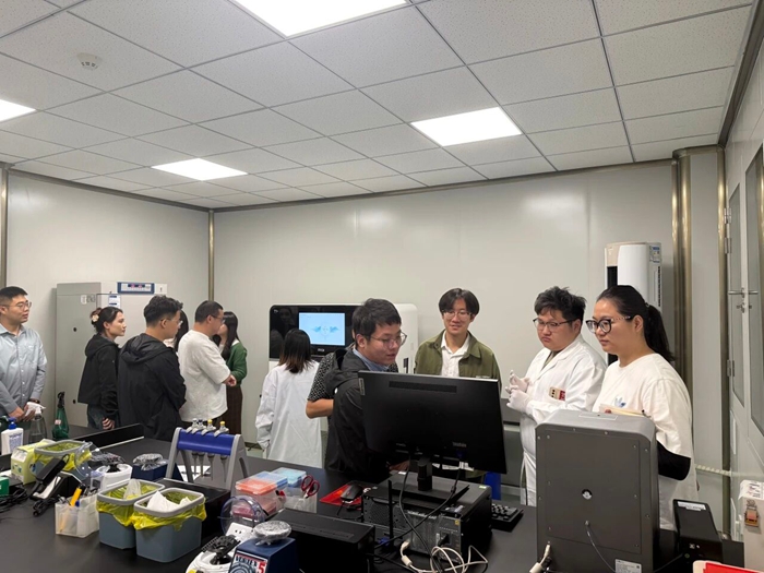 團(tuán)員青年們來到毗鄰清華大學(xué)、北京大學(xué)的北化生科公司國際生物島現(xiàn)場參觀學(xué)習(xí)。工作人員介紹了北化生科公司的整體規(guī)劃與發(fā)展歷程,重點(diǎn)介紹了集團(tuán)生物醫(yī)藥產(chǎn)業(yè)布局、核心服務(wù)平臺功能、重點(diǎn)產(chǎn)業(yè)集群優(yōu)勢以及未來發(fā)展目標(biāo)愿景。隨后,團(tuán)員青年們走進(jìn)實(shí)驗(yàn)室,專業(yè)人員為他們講解了基因測序等基礎(chǔ)知識,并結(jié)合正在開展的科研項(xiàng)目,生動(dòng)介紹了這些技術(shù)在實(shí)際研發(fā)中的應(yīng)用場景與巨大潛力。