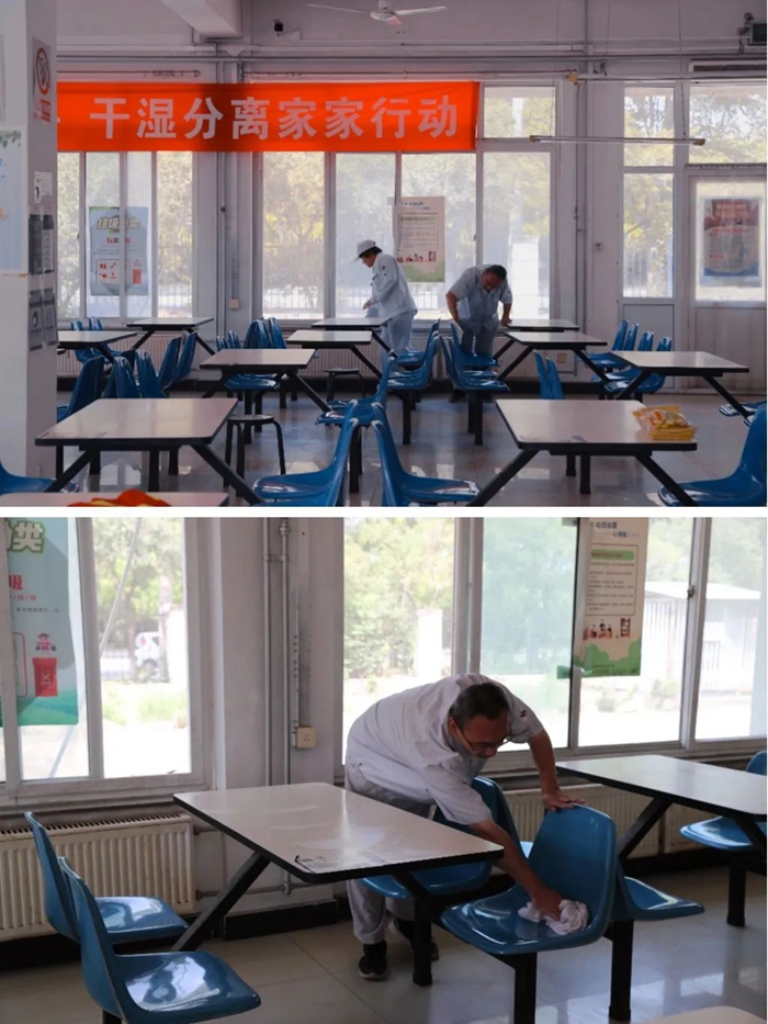 打掃完后,大家還對就餐環境進行了消毒,確保做到消殺“全覆蓋、無死角、無盲區”,為職工提供健康的就餐環境,全力保證全園職工的健康安全。