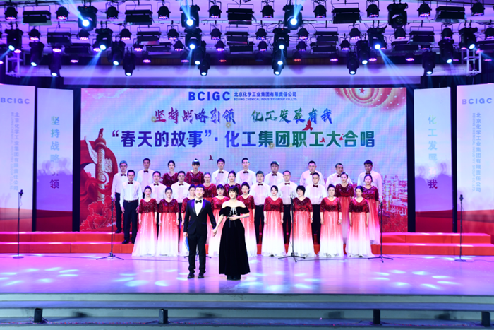表彰會(huì)議結(jié)束后,以“堅(jiān)持戰(zhàn)略引領(lǐng) 化工發(fā)展有我”為主題的“春天的故事”·化工集團(tuán)職工大合唱拉開(kāi)序幕。