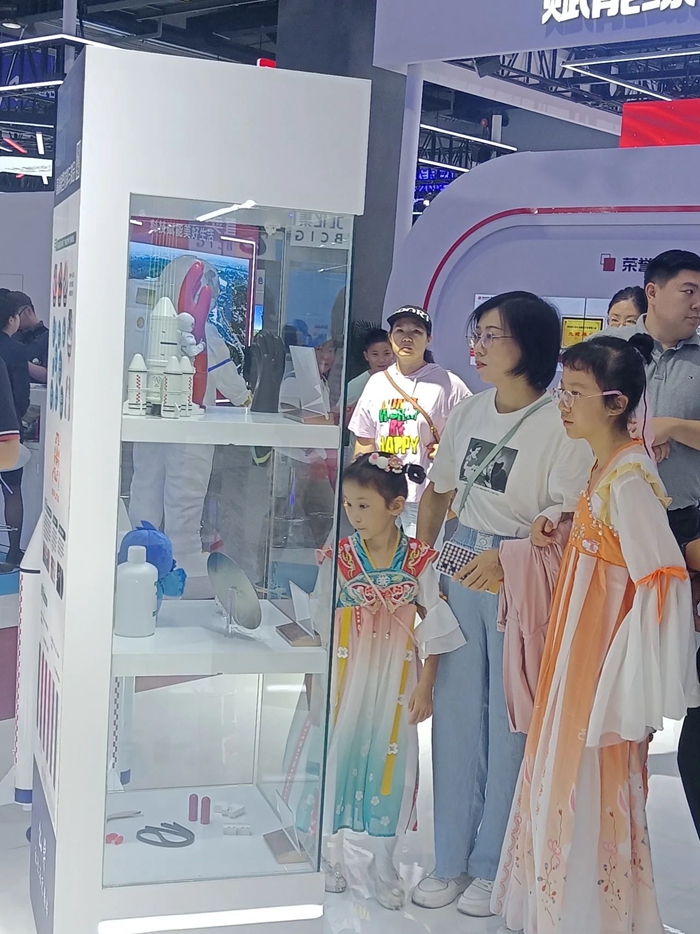 在展位現場,有的觀眾對于展示的儲氫瓶內膽專用材料高度關注,并有強烈的合作意愿,有的觀眾對展示的軟包裝膠黏劑主動提出市場開發合作意向,還有很多觀眾帶著孩子逐一學習觀摩展出的化工領域創新產品??梢哉f,化工集團的主題展位既是商業合作的溝通交流平臺,又是了解化工、學習知識的科普教育平臺。