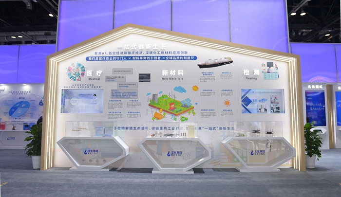 此次“首秀”,北京化工集團(tuán)精心打造了“三個(gè)北化”戰(zhàn)略主題展區(qū),以及新材料、醫(yī)療、檢驗(yàn)檢測、危化安全、建材、汽車材料六大區(qū)域展區(qū),重點(diǎn)展出了化研院、華騰新材等企業(yè)的新材料創(chuàng)新產(chǎn)品及服務(wù)。現(xiàn)場通過智能AI制造場景化演示,生動(dòng)呈現(xiàn)PBT、PA66、膠粘劑等北京化工集團(tuán)高性能材料,從建材、消費(fèi)電子到家用電器,全方位覆蓋的產(chǎn)業(yè)化應(yīng)用場景,彰顯出“技術(shù)+場景”雙向賦能的創(chuàng)新生態(tài),而新近成立的北化生科公司,則聚焦生物醫(yī)藥賽道,攜優(yōu)質(zhì)孵化轉(zhuǎn)化服務(wù)項(xiàng)目亮相科博會(huì)。