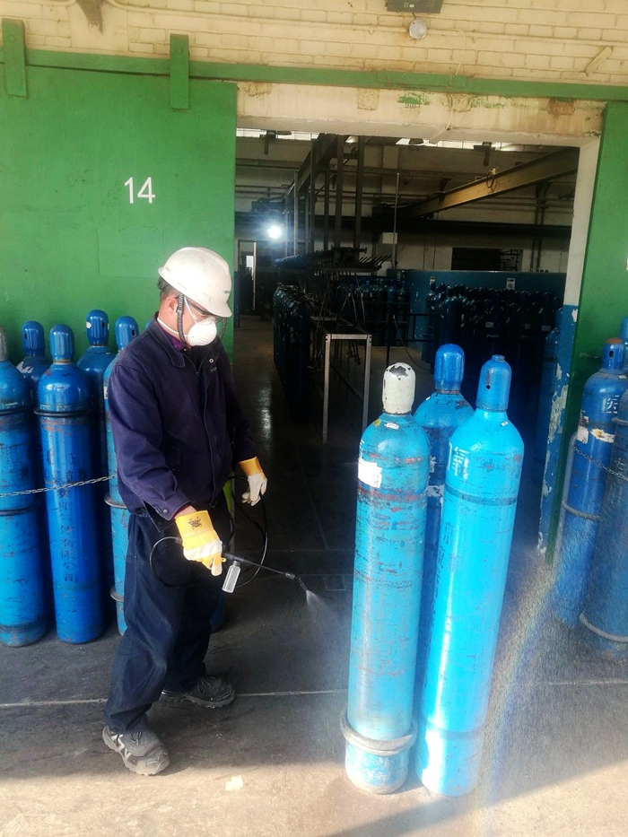 疫情大大增加了配送工作難度,配送員要全副武裝,穿上防護服、戴上防護鏡和防護口罩。每次配送前后,都要分別在公司和醫(yī)院對氧氣鋼瓶和車輛進行消毒處理,以確保醫(yī)用氧在生產(chǎn)、運輸過程中始終處于絕對安全狀態(tài)。
