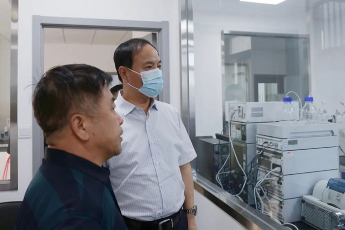 王國華來到化研院科方孵化器辦公樓,深入到實(shí)驗(yàn)室、檢測(cè)室現(xiàn)場(chǎng),全面檢查、詳細(xì)詢問工作人員安全生產(chǎn)、疫情防控各項(xiàng)措施落實(shí)情況。