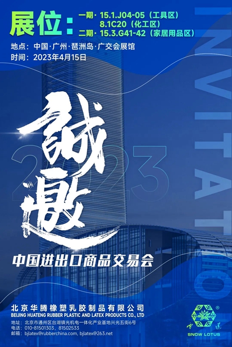 華騰橡塑繼4月15日至19日在工具區、化工區參加第一期廣交會后,于4月23日至27日將在第二期家居用品區設有展位。在此恭候您的到來。