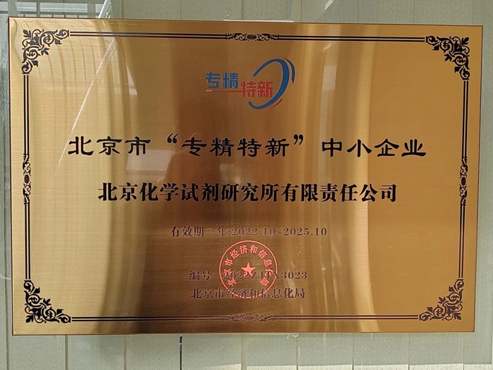 2021年至2024年,試劑所共取得發(fā)明專利授權(quán)7項(xiàng),實(shí)用新型專利11項(xiàng),其中2024年新授權(quán)發(fā)明專利2項(xiàng),另有3項(xiàng)發(fā)明專利正在評(píng)審中。2022年10月,是值得試劑所干部職工銘記的一個(gè)金秋。在這天朗氣清的十月,試劑所被北京市經(jīng)濟(jì)和信息化局授予“專精特新”中小企業(yè)。這一有著強(qiáng)烈時(shí)代特色,代表著新質(zhì)生產(chǎn)力發(fā)展方向的資質(zhì),是對(duì)這家有著60余年發(fā)展歷史的科研型企業(yè),以科技為引領(lǐng),深耕試劑產(chǎn)業(yè)鏈的最大肯定和褒獎(jiǎng)。